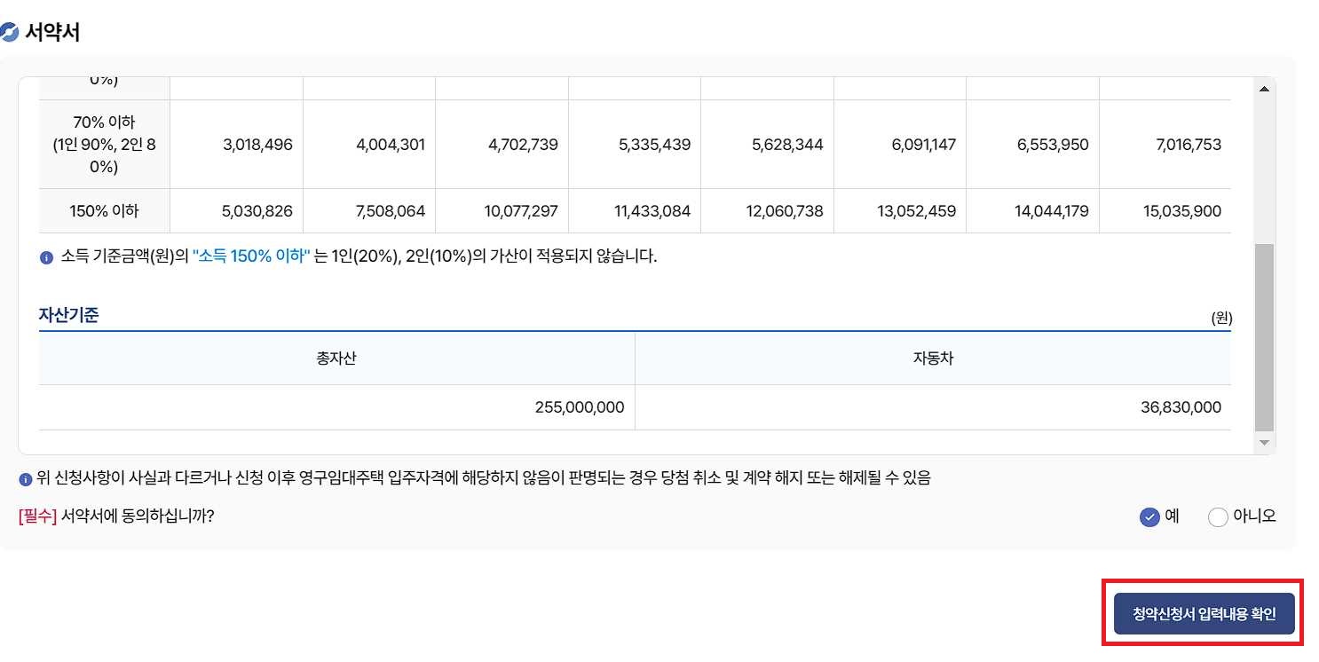 9. 청약신청 정보 확인 및 신청 완료