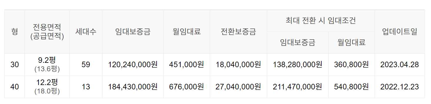 임대보증금 및 월 임대료는 입주자 모집공고일 기준이며, 보증금 최대 전환 시 변동될 수 있습니다.