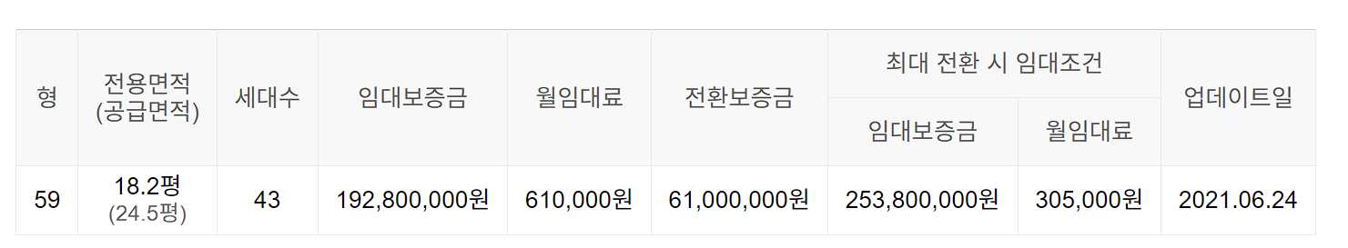 임대보증금 및 월 임대료는 입주자 모집공고일 기준이며, 보증금 최대 전환 시 변동될 수 있습니다.