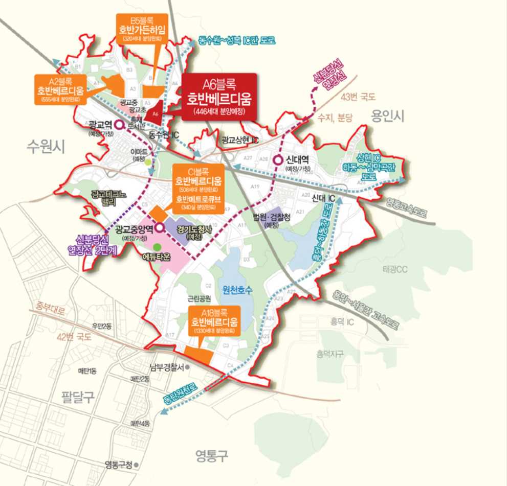 광교호반베르디움트라엘는 경기도 수원시 영통구 광교역 근처에 위치하고 있습니다.