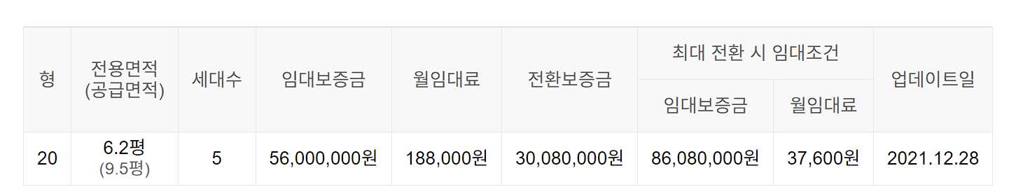 임대보증금 및 월 임대료는 입주자 모집공고일 기준이며, 보증금 최대 전환 시 변동될 수 있습니다.