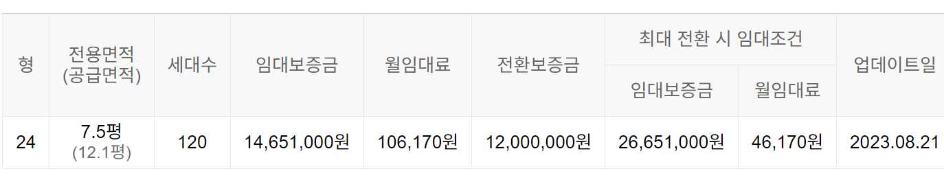 임대보증금 및 월 임대료는 입주자 모집공고일 기준이며, 보증금 최대 전환 시 변동될 수 있습니다.