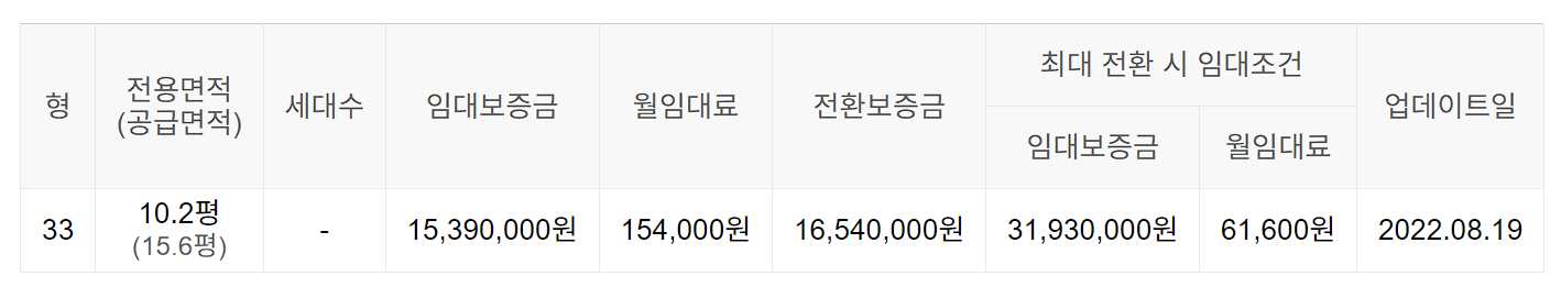 임대보증금 및 월 임대료는 입주자 모집공고일 기준이며, 보증금 최대 전환 시 변동될 수 있습니다.