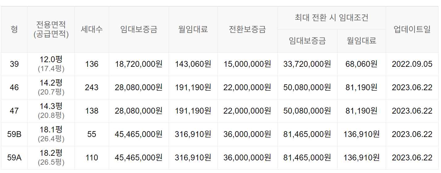 임대보증금 및 월 임대료는 입주자 모집공고일 기준이며, 보증금 최대 전환 시 변동될 수 있습니다.