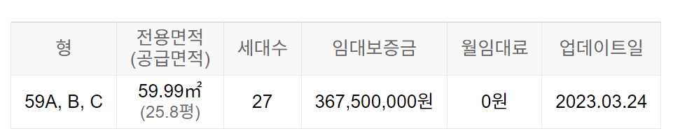 임대보증금 및 월 임대료는 입주자 모집공고일 기준이며, 보증금 최대 전환 시 변동될 수 있습니다.