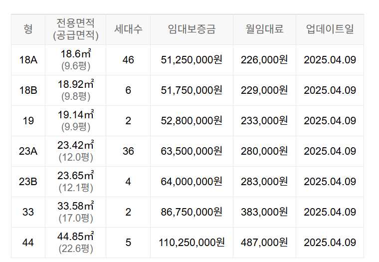 임대보증금 및 월 임대료는 입주자 모집공고일 기준이며, 보증금 최대 전환 시 변동될 수 있습니다.