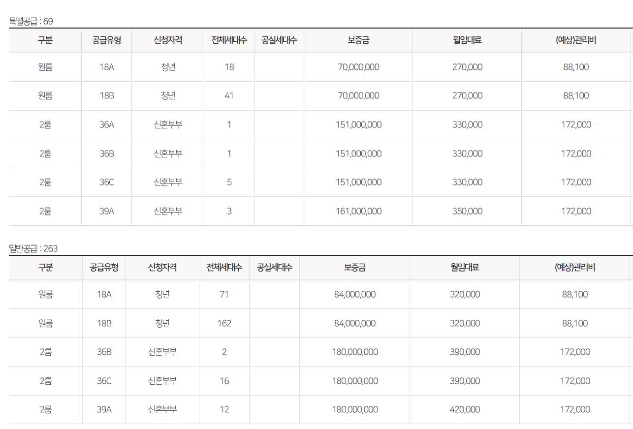 임대보증금 및 월 임대료는 입주자 모집공고일 기준이며, 보증금 최대 전환 시 변동될 수 있습니다.
