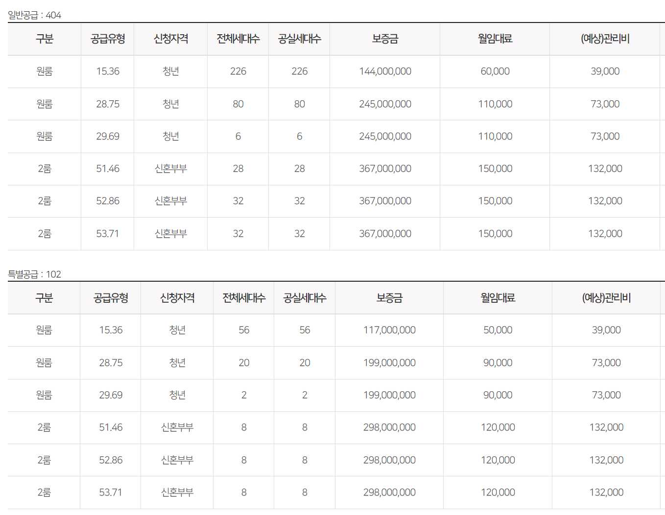 임대보증금 및 월 임대료는 입주자 모집공고일 기준이며, 보증금 최대 전환 시 변동될 수 있습니다.