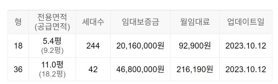 임대보증금 및 월 임대료는 입주자 모집공고일 기준이며, 보증금 최대 전환 시 변동될 수 있습니다.