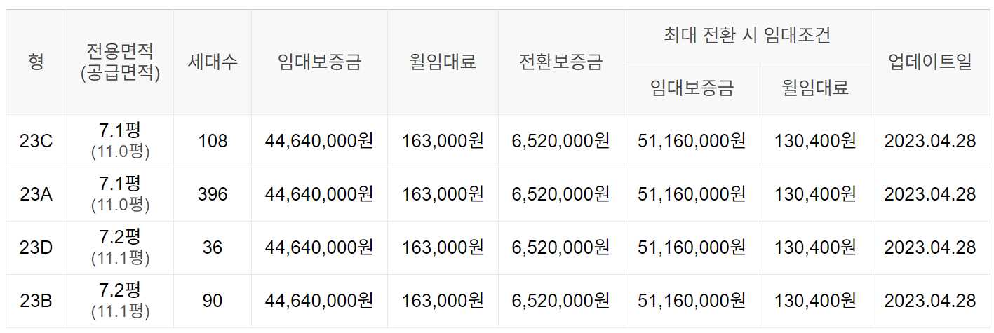 임대보증금 및 월 임대료는 입주자 모집공고일 기준이며, 보증금 최대 전환 시 변동될 수 있습니다.