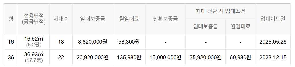 임대보증금 및 월 임대료는 입주자 모집공고일 기준이며, 보증금 최대 전환 시 변동될 수 있습니다.