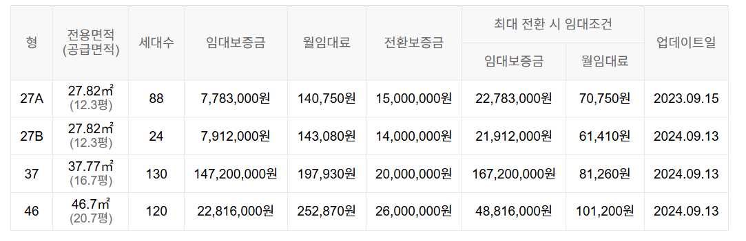 임대보증금 및 월 임대료는 입주자 모집공고일 기준이며, 보증금 최대 전환 시 변동될 수 있습니다.