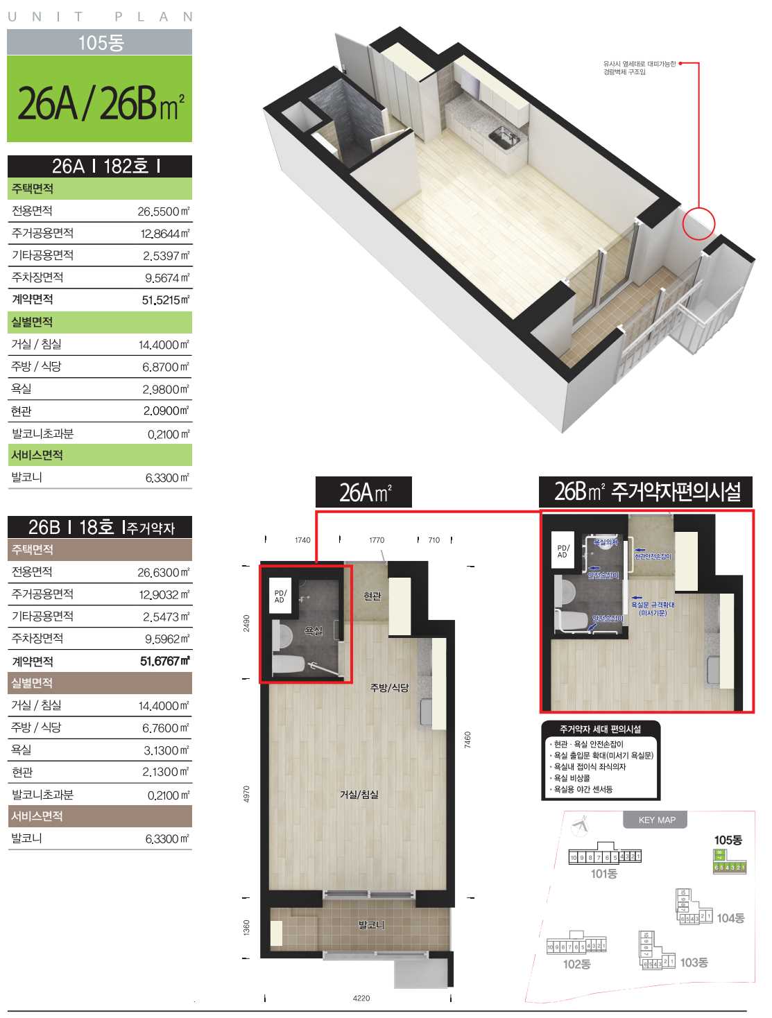 영구임대는 전용면적 26.55~26.63㎡형(26형) 단일형으로, 개별난방 방식이 적용됩니다.