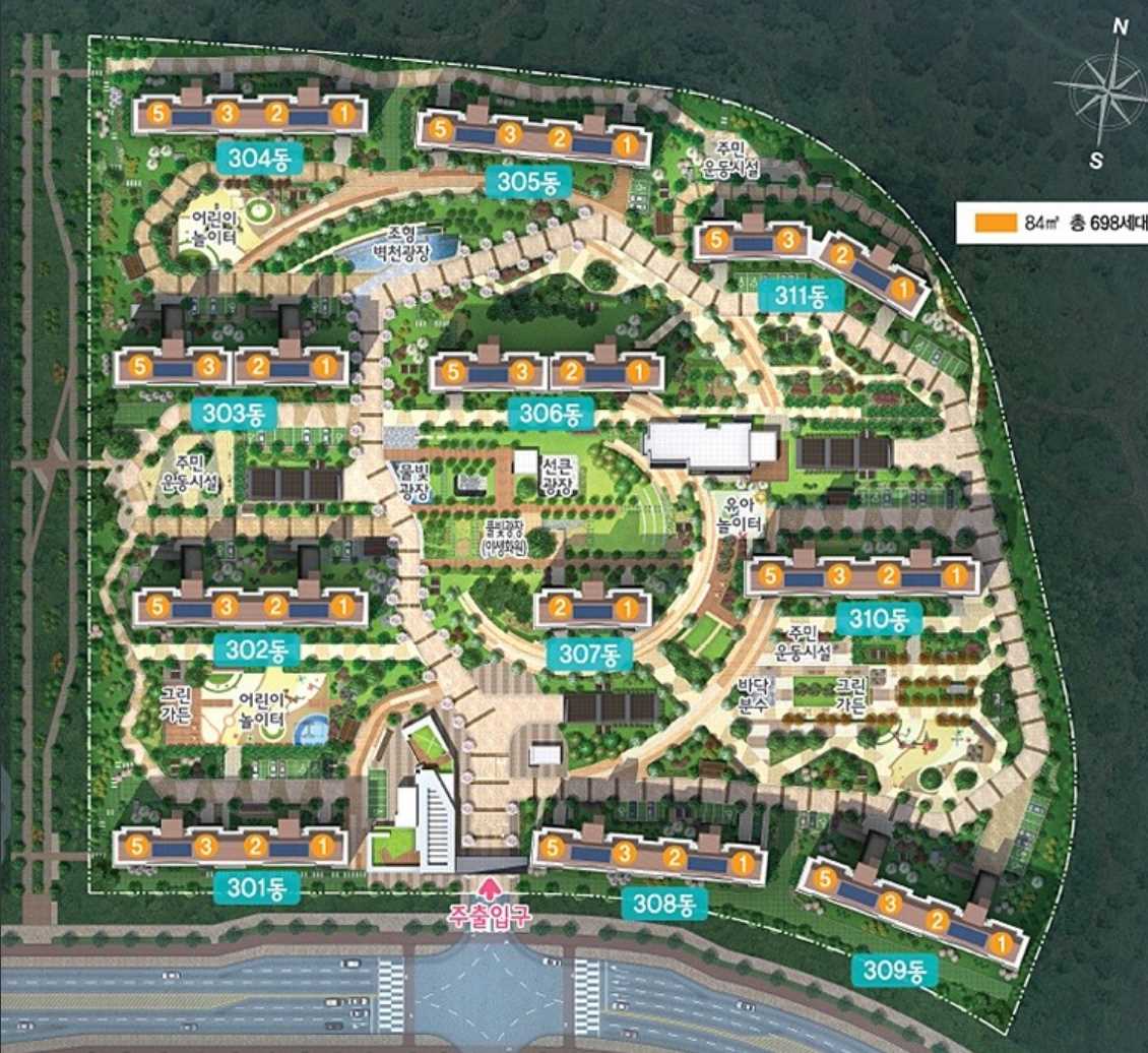 무인택배함, 주민 커뮤니티센터, 경로당, 실외운동기구, 지하·지상 주차장, 커뮤니티 공간