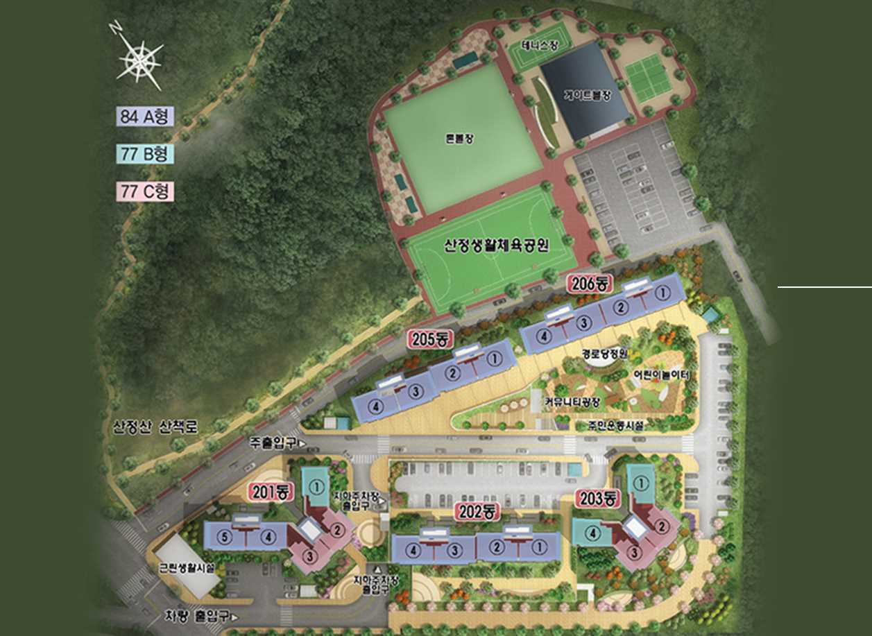 근린공원·녹지대·산책로 주변에 조성되어 도시 조망 및 생활환경 개선