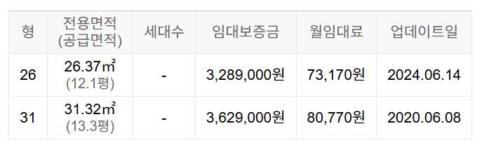 임대보증금 및 월 임대료는 입주자 모집공고일 기준이며, 보증금 최대 전환 시 변동될 수 있습니다.