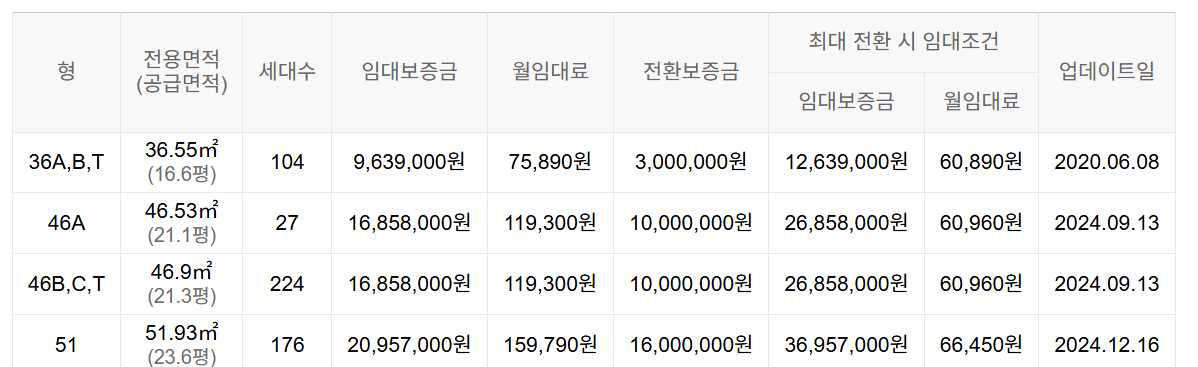 임대보증금 및 월 임대료는 입주자 모집공고일 기준이며, 보증금 최대 전환 시 변동될 수 있습니다.