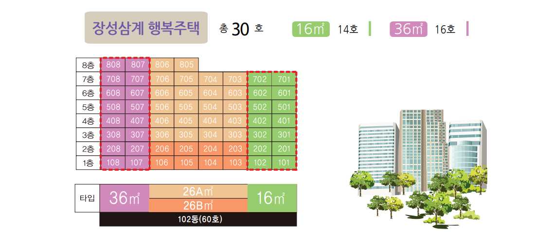장성삼계 행복주택은 전라남도 장성군 삼계면에 위치한 청년, 신혼부부, 고령층 등을 위한 공공임대주택으로, 비교적 최근에 공급되어 시설이 깔끔하고 주변 환경이 쾌적합니다. 중소규모의 단지로 구성되어 있으며, 각 세대는 전용 26㎡, 36㎡, 44㎡ 등 다양한 타입으로 구성되어 1~2인 가구에 적합합니다.