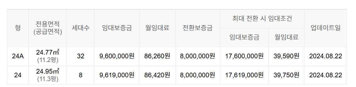 임대보증금 및 월 임대료는 입주자 모집공고일 기준이며, 보증금 최대 전환 시 변동될 수 있습니다.