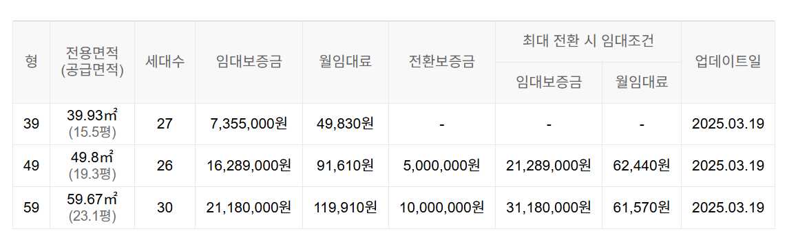 임대보증금 및 월 임대료는 입주자 모집공고일 기준이며, 보증금 최대 전환 시 변동될 수 있습니다.