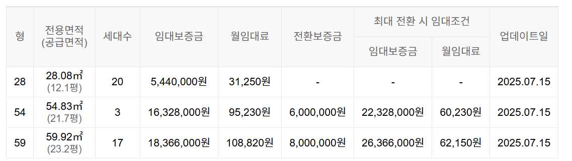 임대보증금 및 월 임대료는 입주자 모집공고일 기준이며, 보증금 최대 전환 시 변동될 수 있습니다.