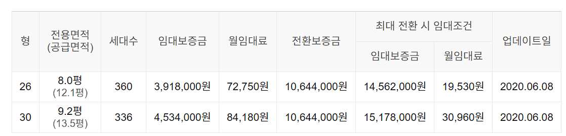 임대보증금 및 월 임대료는 입주자 모집공고일 기준이며, 보증금 최대 전환 시 변동될 수 있습니다.