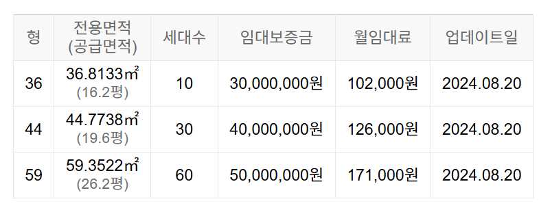 임대보증금 및 월 임대료는 입주자 모집공고일 기준이며, 보증금 최대 전환 시 변동될 수 있습니다.