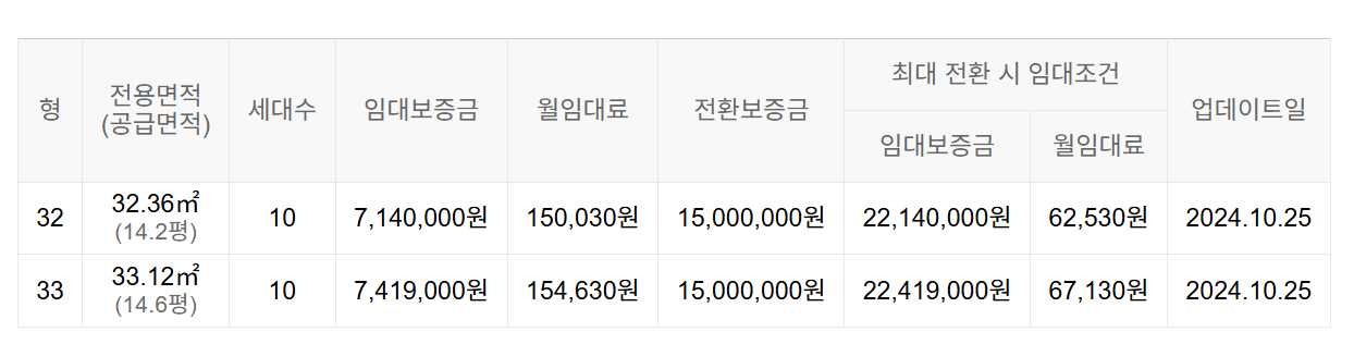 임대보증금 및 월 임대료는 입주자 모집공고일 기준이며, 보증금 최대 전환 시 변동될 수 있습니다.