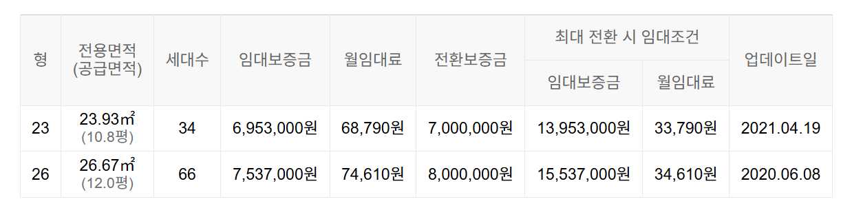 임대보증금 및 월 임대료는 입주자 모집공고일 기준이며, 보증금 최대 전환 시 변동될 수 있습니다.