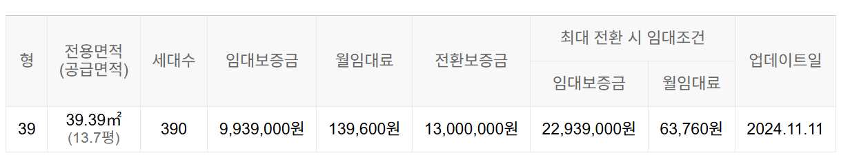임대보증금 및 월 임대료는 입주자 모집공고일 기준이며, 보증금 최대 전환 시 변동될 수 있습니다.