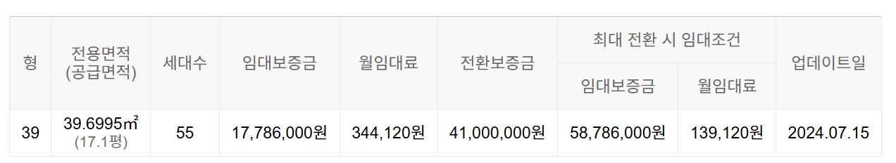 임대보증금 및 월 임대료는 입주자 모집공고일 기준이며, 보증금 최대 전환 시 변동될 수 있습니다.