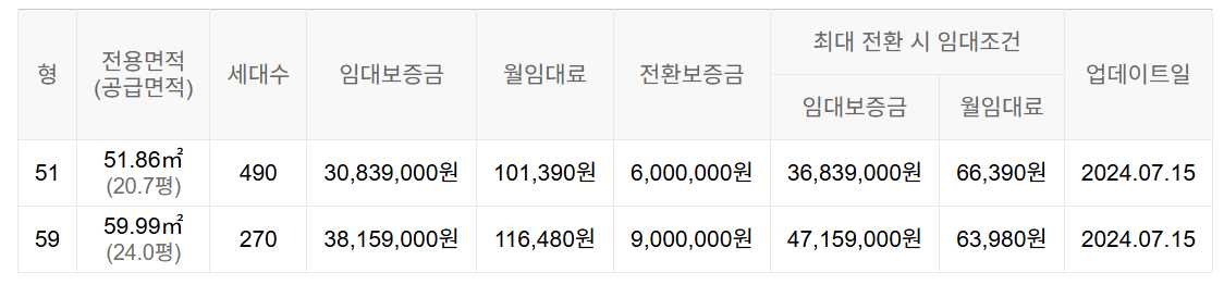 임대보증금 및 월 임대료는 입주자 모집공고일 기준이며, 보증금 최대 전환 시 변동될 수 있습니다.