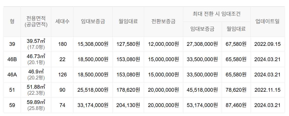 임대보증금 및 월 임대료는 입주자 모집공고일 기준이며, 보증금 최대 전환 시 변동될 수 있습니다.