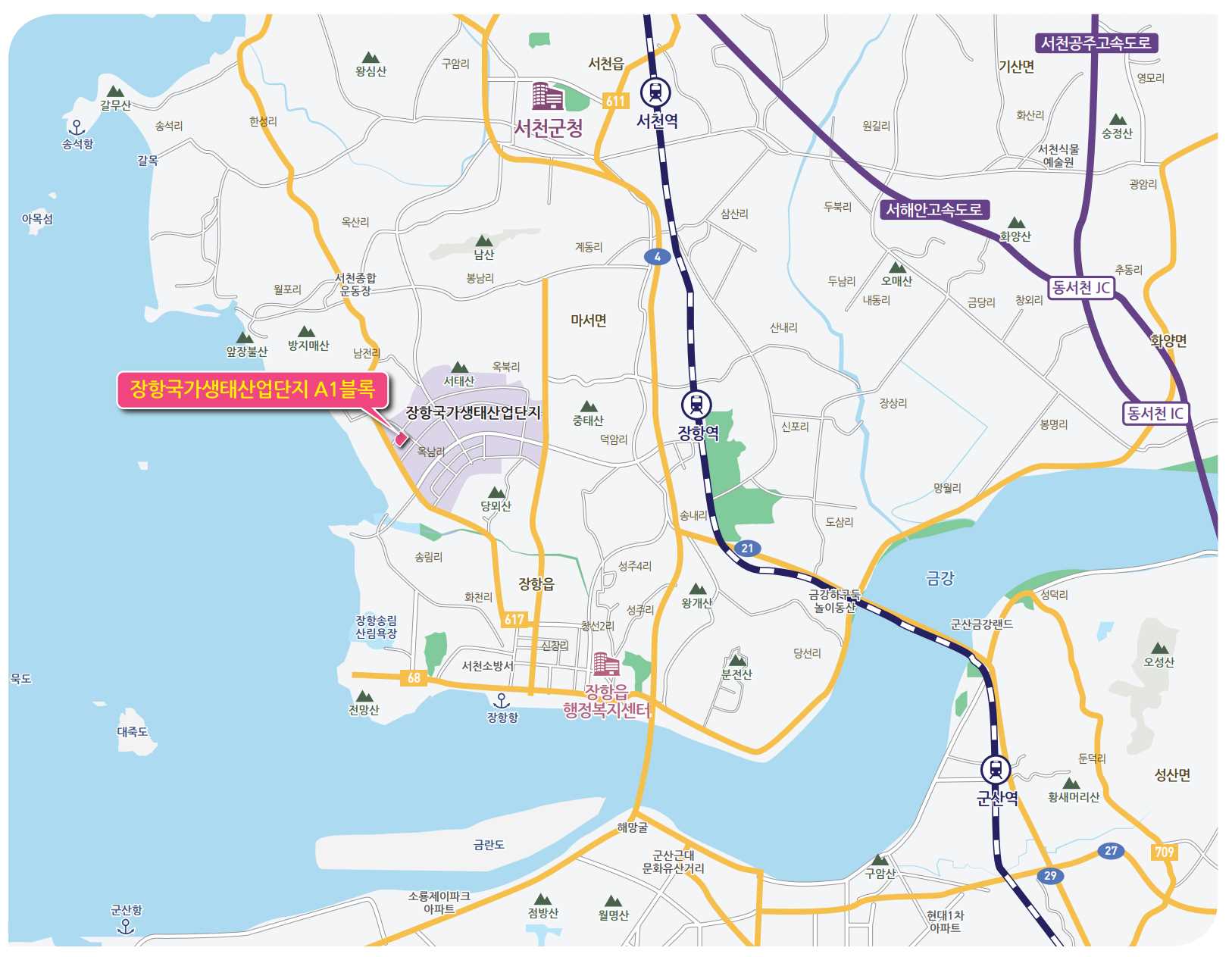 장항국가생태산업단지A1BL는 충청남도 서천군에 위치하고 있습니다.