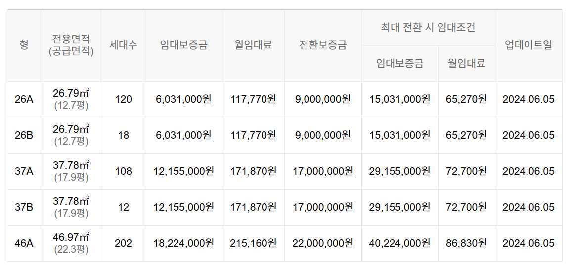 임대보증금 및 월 임대료는 입주자 모집공고일 기준이며, 보증금 최대 전환 시 변동될 수 있습니다.