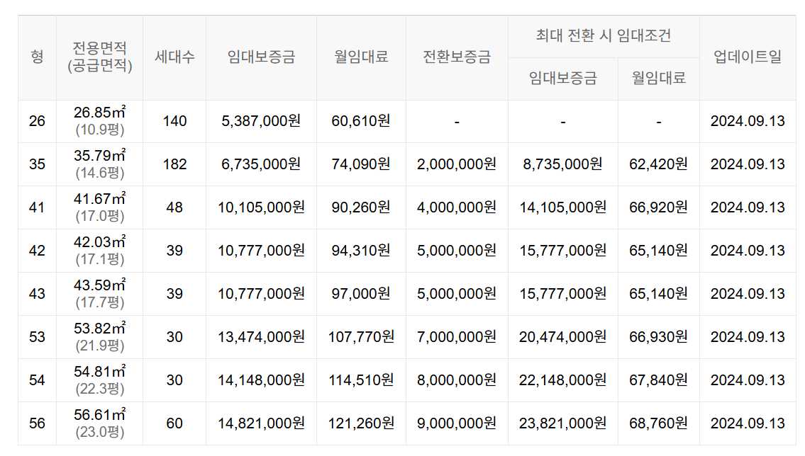임대보증금 및 월 임대료는 입주자 모집공고일 기준이며, 보증금 최대 전환 시 변동될 수 있습니다.