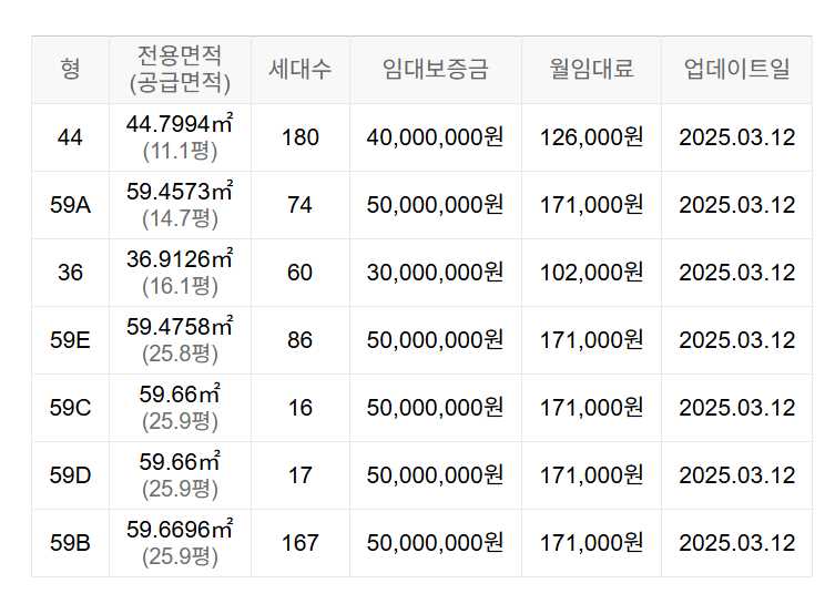 임대보증금 및 월 임대료는 입주자 모집공고일 기준이며, 보증금 최대 전환 시 변동될 수 있습니다.