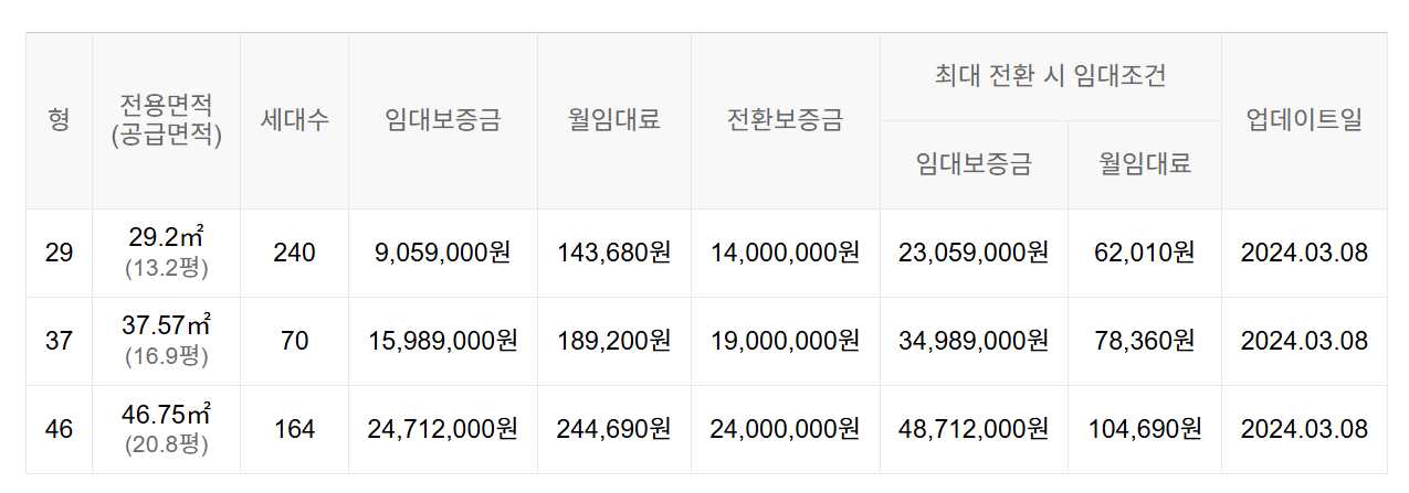 임대보증금 및 월 임대료는 입주자 모집공고일 기준이며, 보증금 최대 전환 시 변동될 수 있습니다.