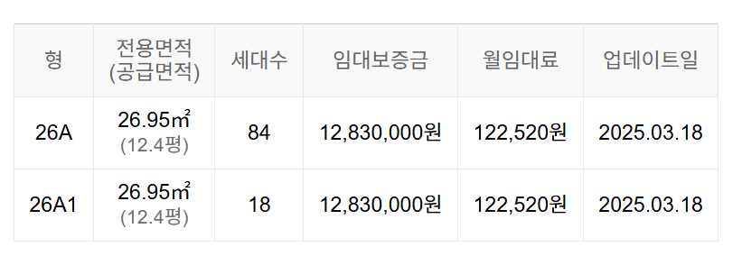 임대보증금 및 월 임대료는 입주자 모집공고일 기준이며, 보증금 최대 전환 시 변동될 수 있습니다.