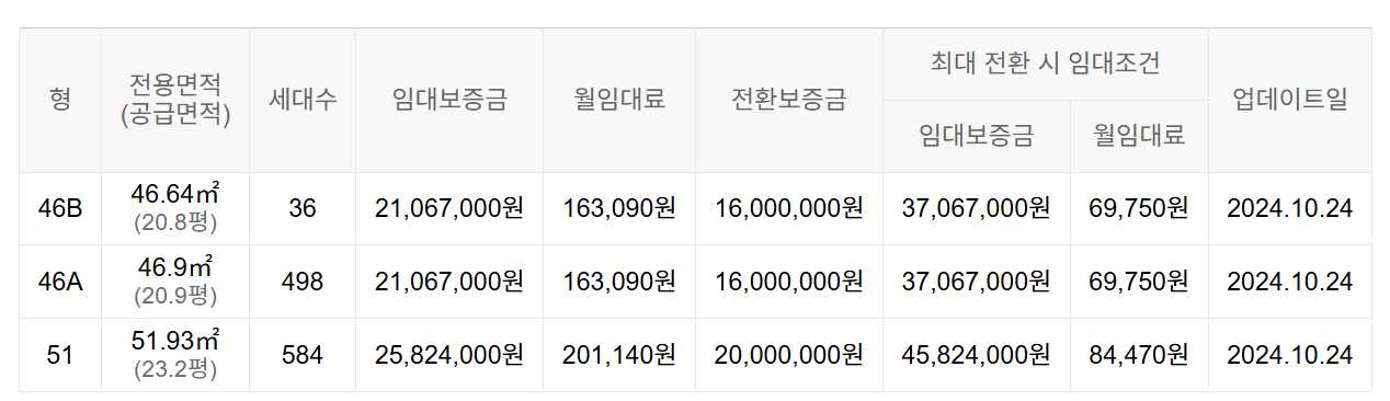 임대보증금 및 월 임대료는 입주자 모집공고일 기준이며, 보증금 최대 전환 시 변동될 수 있습니다.