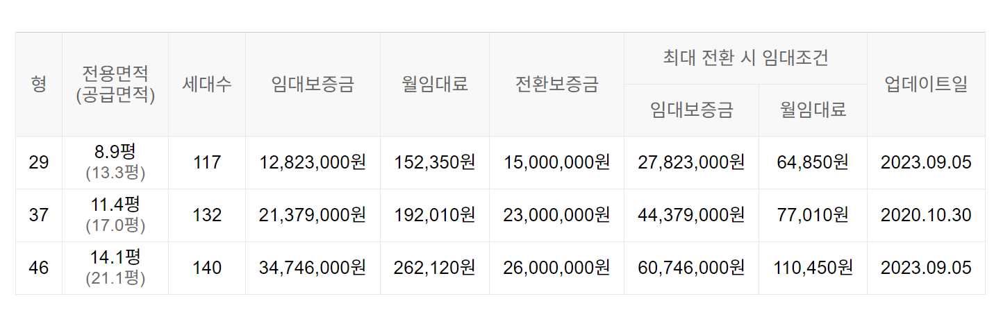 임대보증금 및 월 임대료는 입주자 모집공고일 기준이며, 보증금 최대 전환 시 변동될 수 있습니다.