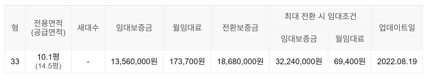 임대보증금 및 월 임대료는 입주자 모집공고일 기준이며, 보증금 최대 전환 시 변동될 수 있습니다.
